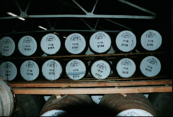 Der entstandene Alkohol ist noch farblos und darf sich auch noch nicht Scotch Whisky nennen, Er muss dazu mindestens 3 Jahre lang in Eichenfässern und in Schottland Reifen. Die Fässer werden in Lagerhäusern ( „warehouses“ ) gelagert.