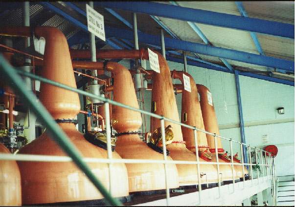 Die aus Kupfer bestehenden Brennblasen (englisch „pot stills“) werden stark erhitzt (früher meist durch Kohlefeuer, heute durch Dampf).Brennereien in Schottland destillieren im allgemeinen zweifach. Bei der ersten Destillation werden die leicht flüchtigen Alkohole abgeschieden.und im Kondensator verflüssigt, dabei entsteht der Rohbrand (englisch „low wines“) mit einem Alkoholgehalt von 20-25%. Die zweiten Destillation, wird in der Spirit Still durchgeführt, dabei entsteht der Feinbrand. Man unterscheidet in Vorlauf, Mittellauf und Nachlauf. Vorlauf und Nachlauf enthalten Stoffe, die ungeeignet sind (Methanol, höhere Alkohole, unangenehme Aromastoffe etc.) Nur der Mittellauf mit seinem Alkoholgrad von zwischen 63 und 70% wird für die Whisky Herstellung verwendet. Im Spirit Safe, hat der Brennmeister, keinen direkten Zugriff