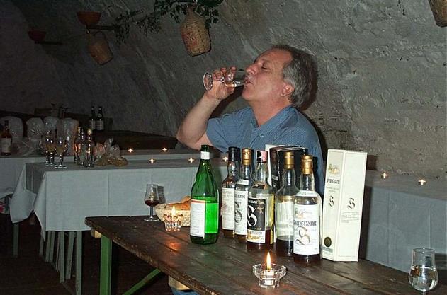 Das Springbank Masterclass Tasting mit Euan Mitchell stand auf der Kippe, da die Flaschen in ein falsches Flugzeug geladen worden waren und sich nicht in Deutschland befanden. Nach vielen Telefonaten stellte sich heraus wo sie gelandet waren. Sie wurden dann nach Frankfurt geflogen aber der Kurier der Sie abliefern sollte verfuhr sich auch noch. Ich habe mich mit Ihm 20 Minuten vor Beginn auf der Autobahn getroffen und sie selbst zum Tasting befördert. Theo und die anderen lenkten die Anwesenden solange ab bis ich mit den Flaschen eingetroffen war und das Tasting beginnen konnte